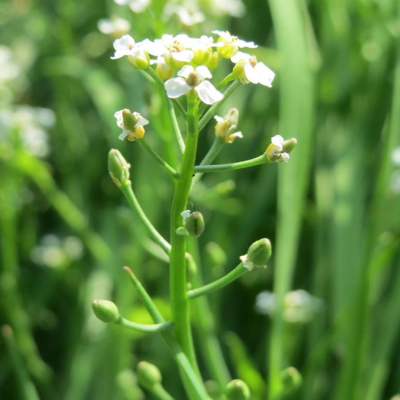 - grappe fructifère allongée, étroite, à pédicelles arqués-ascendants, 2-3 fois plus longs que les silicules